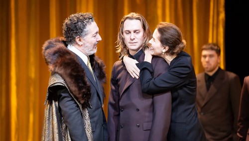 Монтенез хорош от начала до конца -все остальные выступают в своих постоянных амплуа — Дени Подалидес, Полоний, играет Подалидеса, Галлен, Клавдий, -Гальена, а Флоранс Виала,Гертруда , – Виалу. Такое непомерное каботинство с размахом, но без смысла. Горацио — Лоик Корбери напускает немного романтического тумана, но роль его так до конца спектакля и не прояснена, какой-то человек-ошибка.